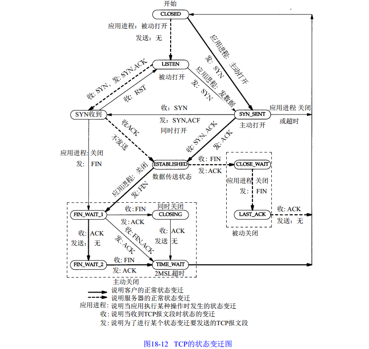 - 主动发 FIN 包的一方需要进入 TIME_WAIT 以重发被动关闭方 FIN 的 ACK,因为被动关闭方发的 FIN 如果没有收到 ACK ,会重发 FIN,如果没有 TIME_WAIT 状态,主动关闭方就不认识重发的 FIN,会回复 RST,在被动关闭方就会报错。